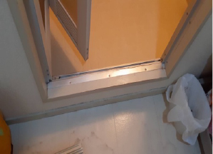 東灘区・築40年のマンション。浴室折戸のガイド部品が破損した為に開閉が不便となりました。商品が古く(ナショナル製)部品の品番が分からない為部品調達が不可能となり、浴室折戸を新調致しました。
