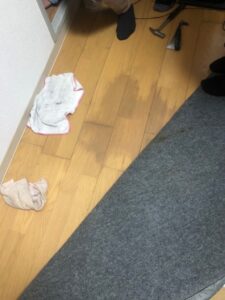 フローリング床 水が染み出てる
